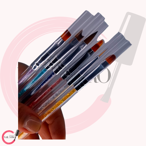 Su diseño ergonómico y liviano facilita el trabajo prolongado sin fatiga, mientras que los mangos decorativos aportan un toque moderno y profesional al set de trabajo. Las cerdas sintéticas de alta calidad aseguran una aplicación controlada y una limpieza sencilla, mientras que las puntas metálicas del dotting ofrecen durabilidad y definición.